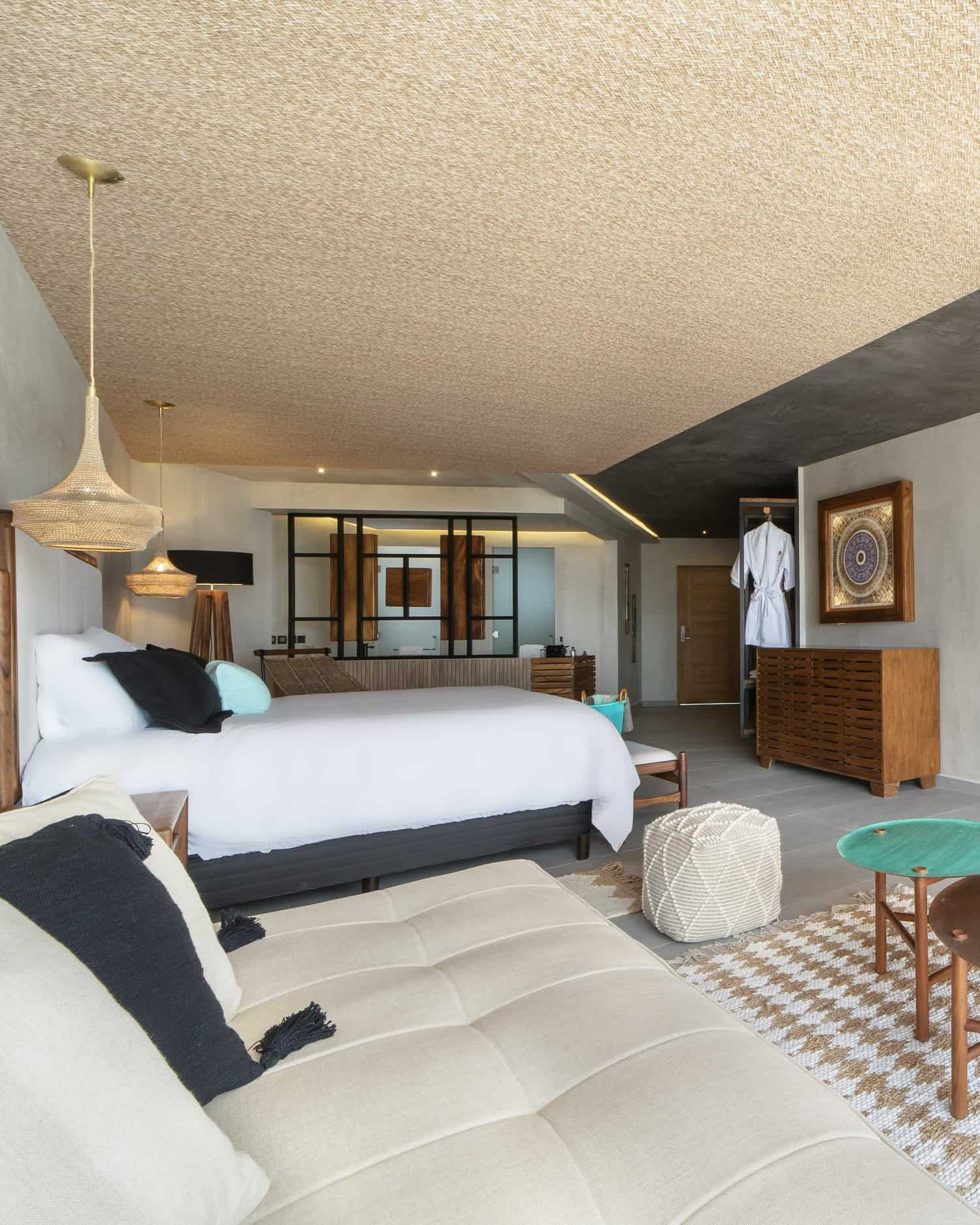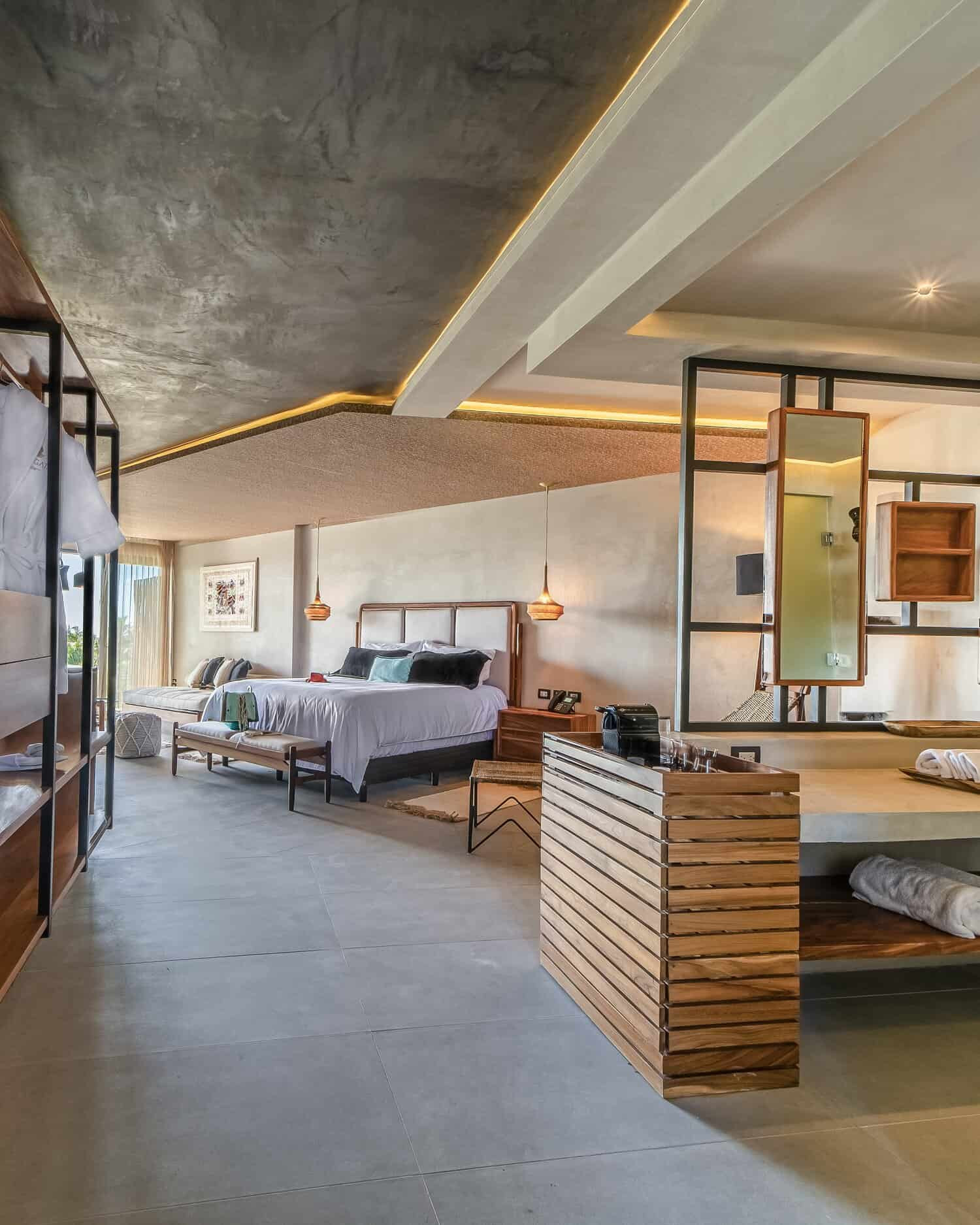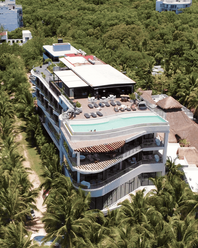 En la planta baja, el beach club combina la arena blanca y el mar turquesa con una piscina frente al océano, creando un refugio donde relajarse y dejarse llevar por la brisa marina. En MVNGATA, cada espacio refleja la armonía entre el entorno natural y el diseño contemporáneo, haciendo de cada estancia un recuerdo inolvidable.